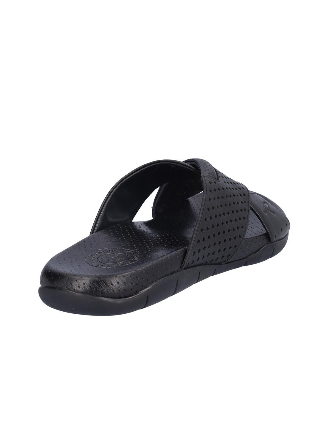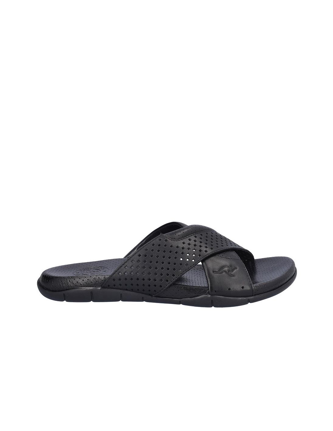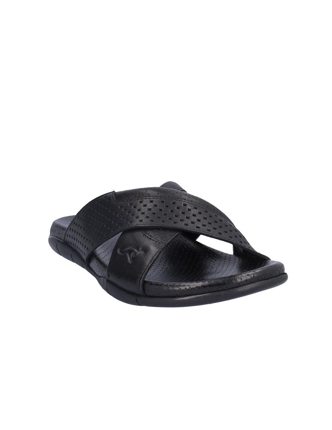 Sandalia Kangaroos cruzada de caballero en piel negro, forro de piel, planta bio de piel perforada, suela de 2,5 cm altura. Composición: Empeine: Piel. Forro y planta: Piel. Suela: Fibra sintética. Componente principal: Piel