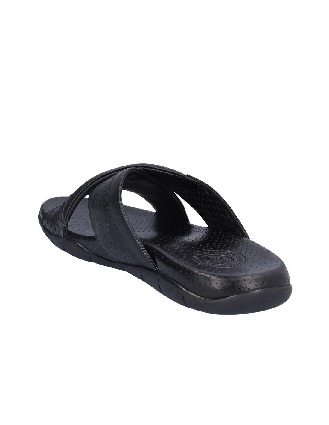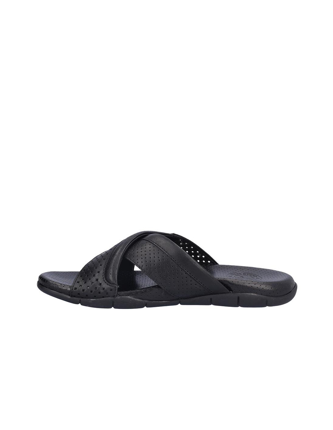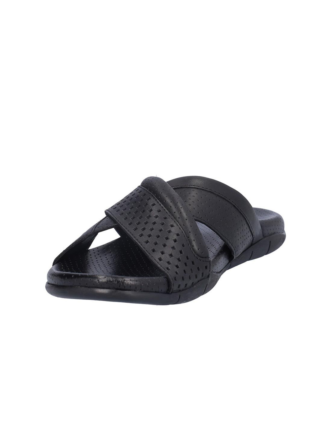 Sandalia Kangaroos cruzada de caballero en piel negro, forro de piel, planta bio de piel perforada, suela de 2,5 cm altura. Composición: Empeine: Piel. Forro y planta: Piel. Suela: Fibra sintética. Componente principal: Piel