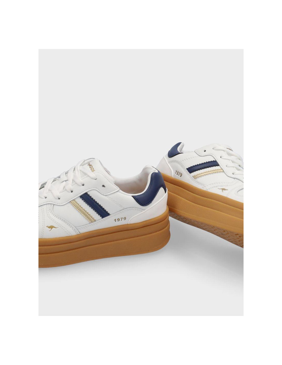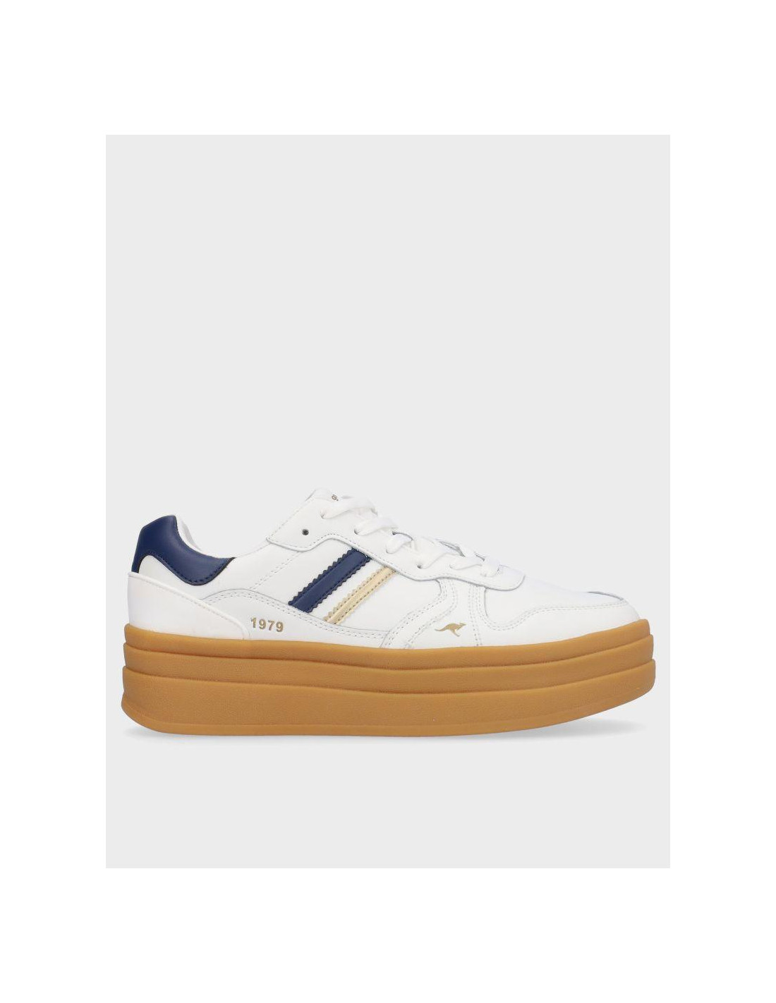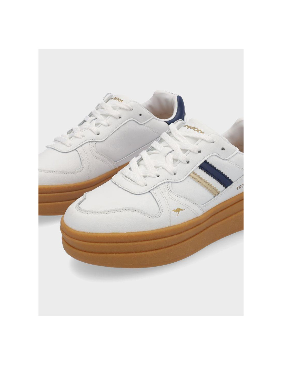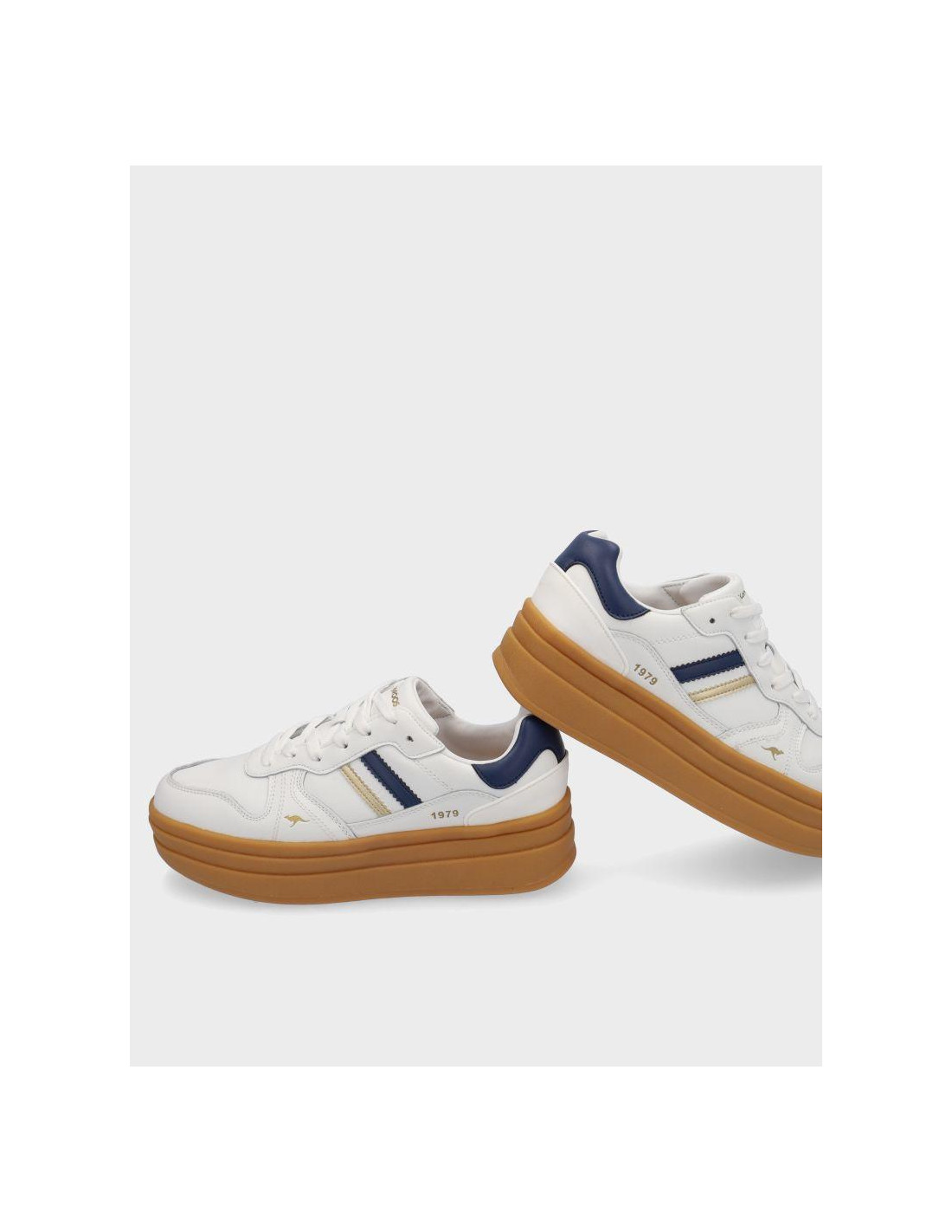 Deportivos con plataforma chica Kangaroos fabricados en piel blanco, cierre con cordones, suela plataforma de 4 cm de altura, forro textil, plantilla textil extraible termoconformada, fabricado en España. Composición: Empeine:Piel. Forro: textil. Plantilla: Textil. Suela: Fibra sintética. Componente principal: Piel