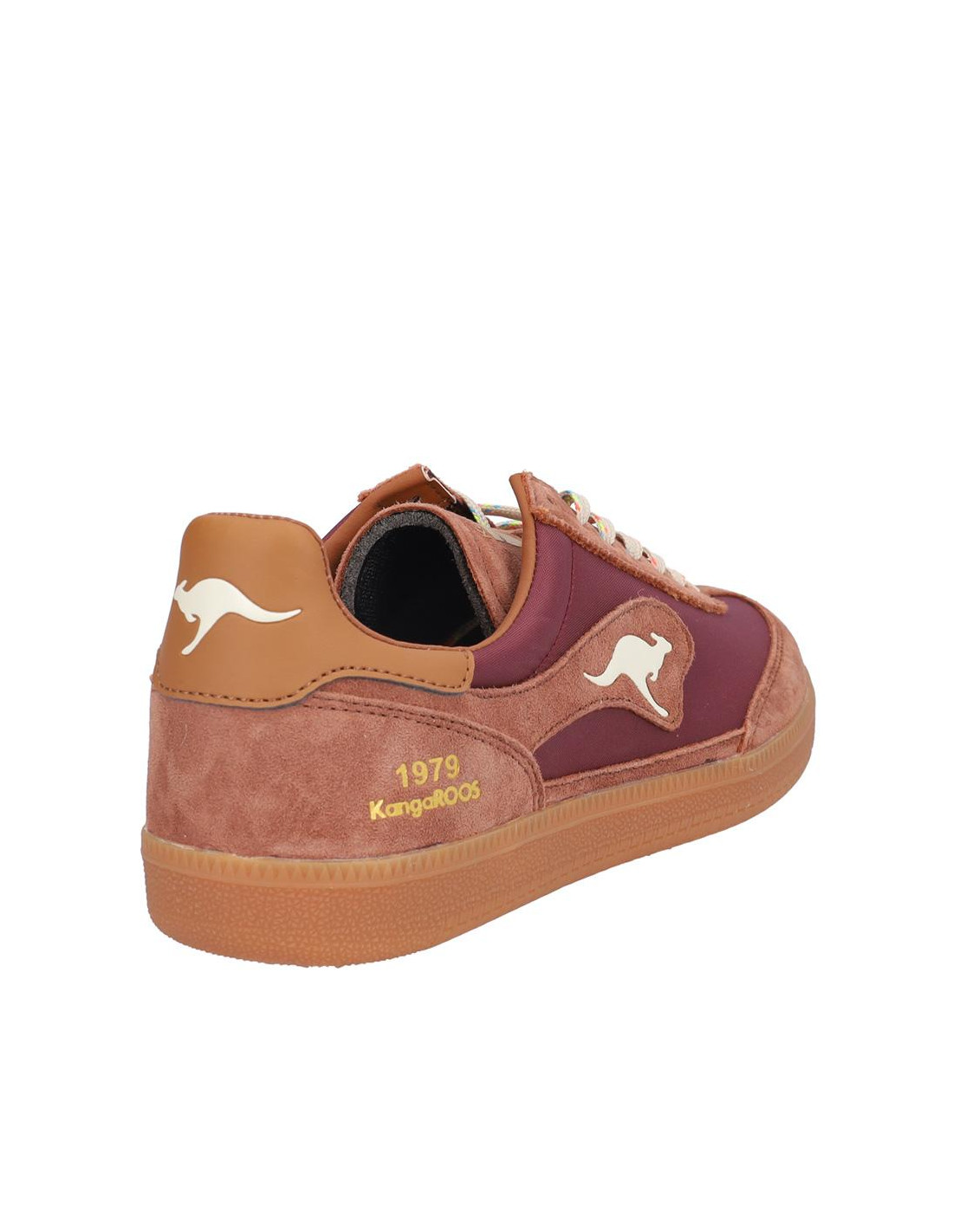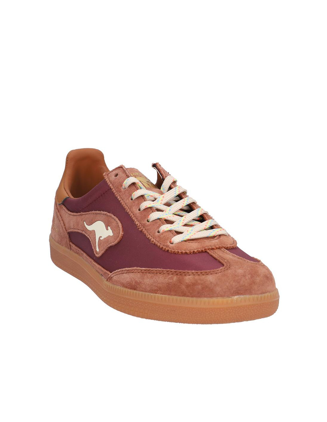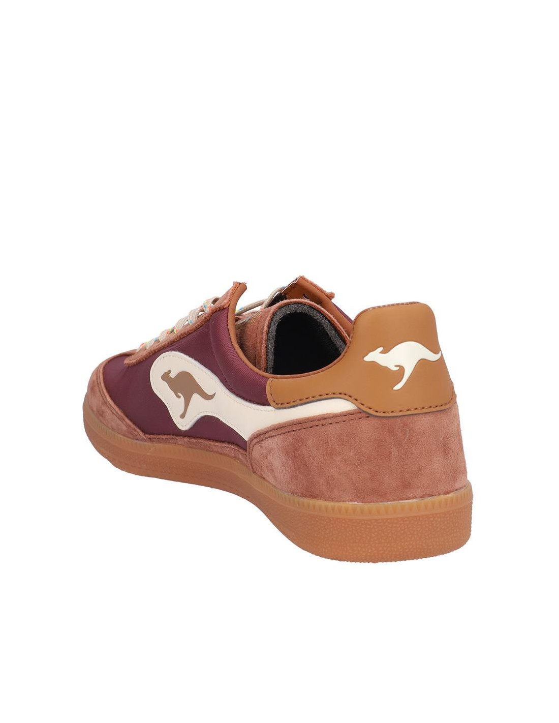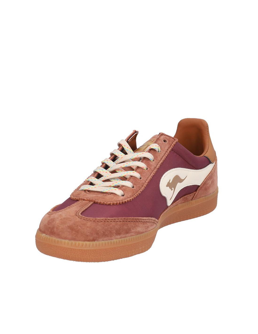 Zapatillas Kangaroos señora combinado serraje/textil berenjena/marrón, cierre de cordones, forro textil combinado, plantilla textil extraible termoconformada. Suela ligera 2 cm altura. Composición: Empeine: Piel/textil. Forro: Textil/otros materiales. Plantilla: Textil. Suela: Fibra sintética