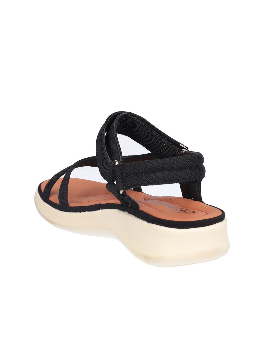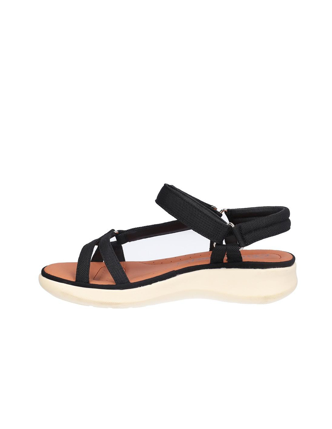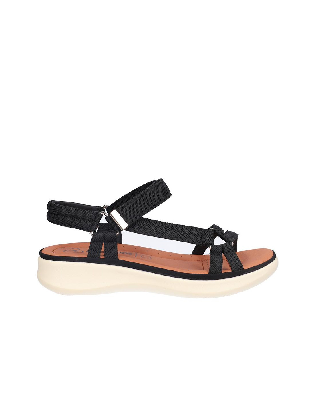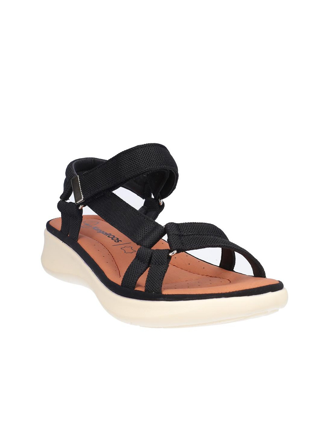 Sandalia Kangaroos señora textil negro, cierre de velcro, forro textil, planta acolchada de piel, suela ligera de eva de 3 cm altura. Composición: Empeine: Textil. Forro: Textil. Planta: Piel. Suela: Eva