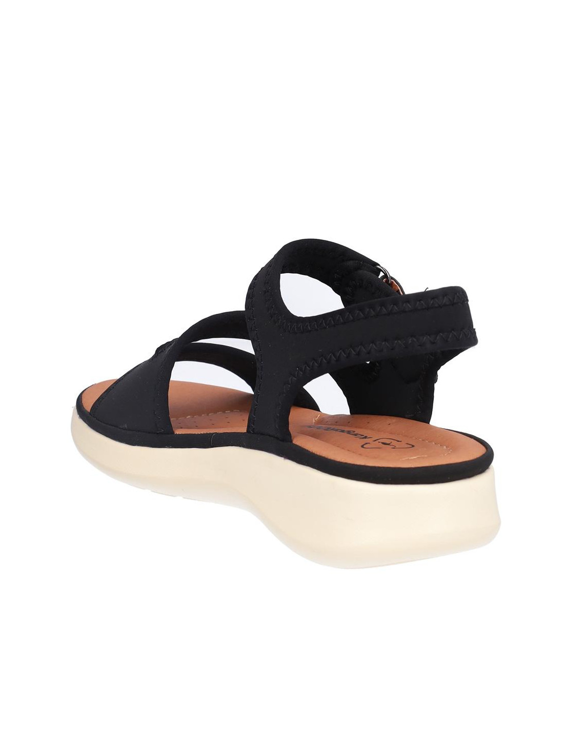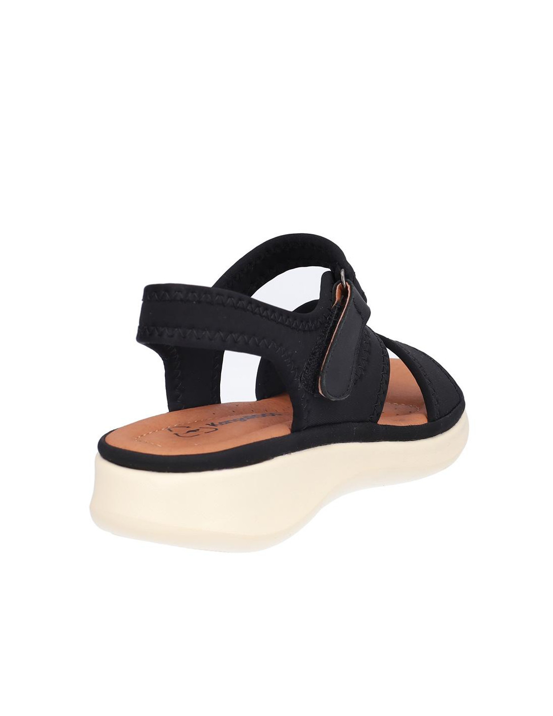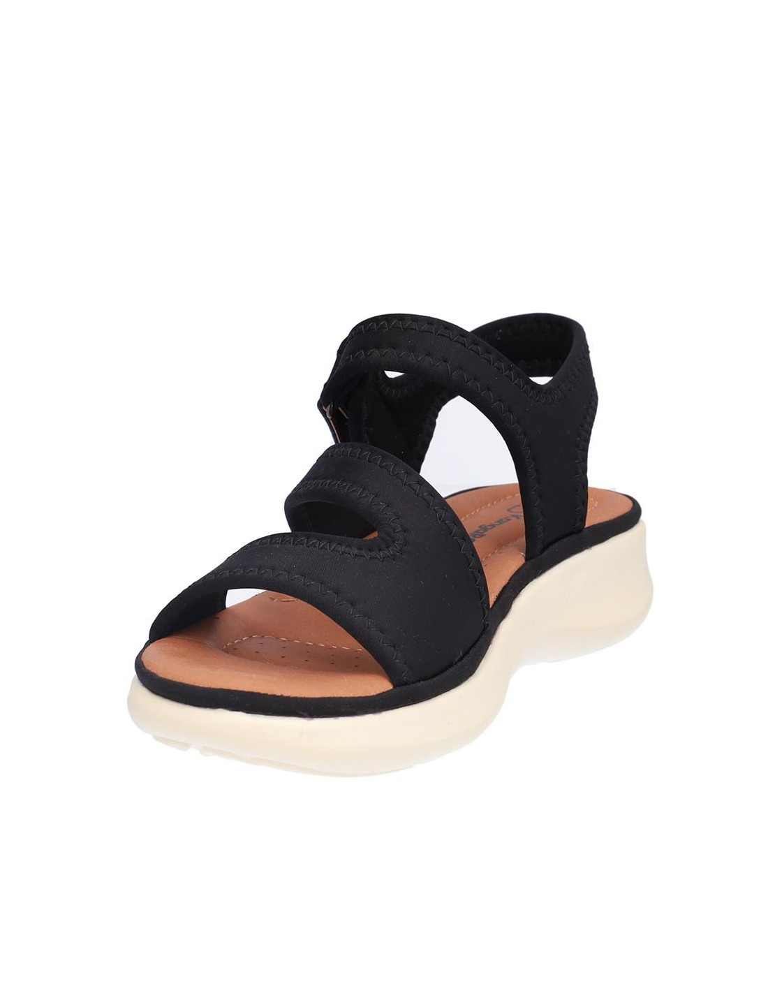 Sandalia Kangaroos señora textil negro, cierre de velcro con hebilla, forro textil, planta acolchada de piel, suela ligera de eva de 3 cm altura. Composición: Empeine: Textil. Forro: Textil. Planta: Piel. Suela: Eva