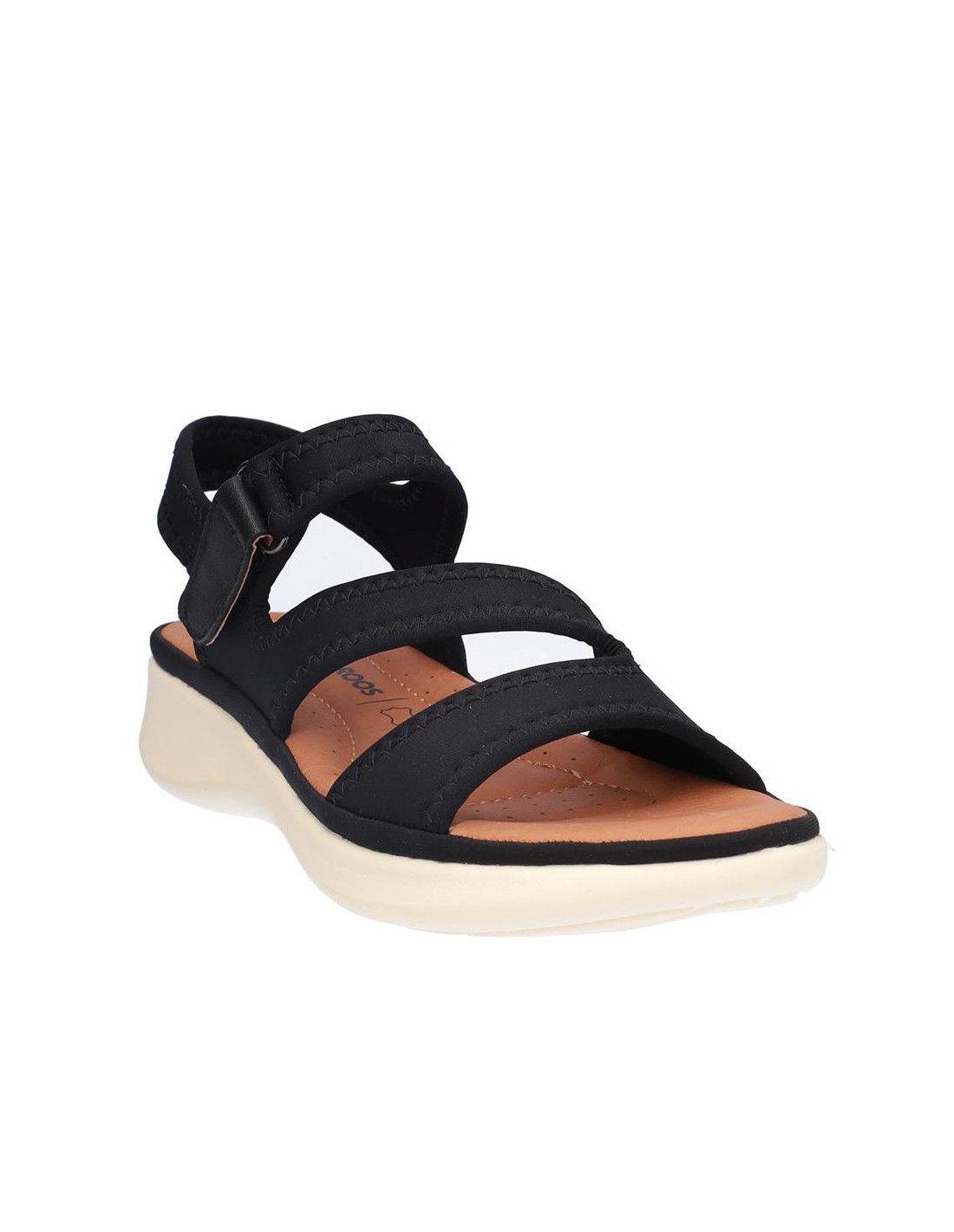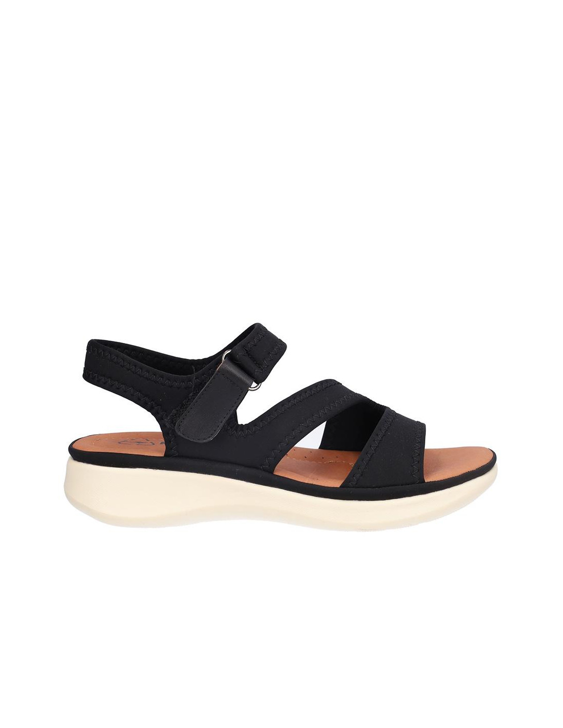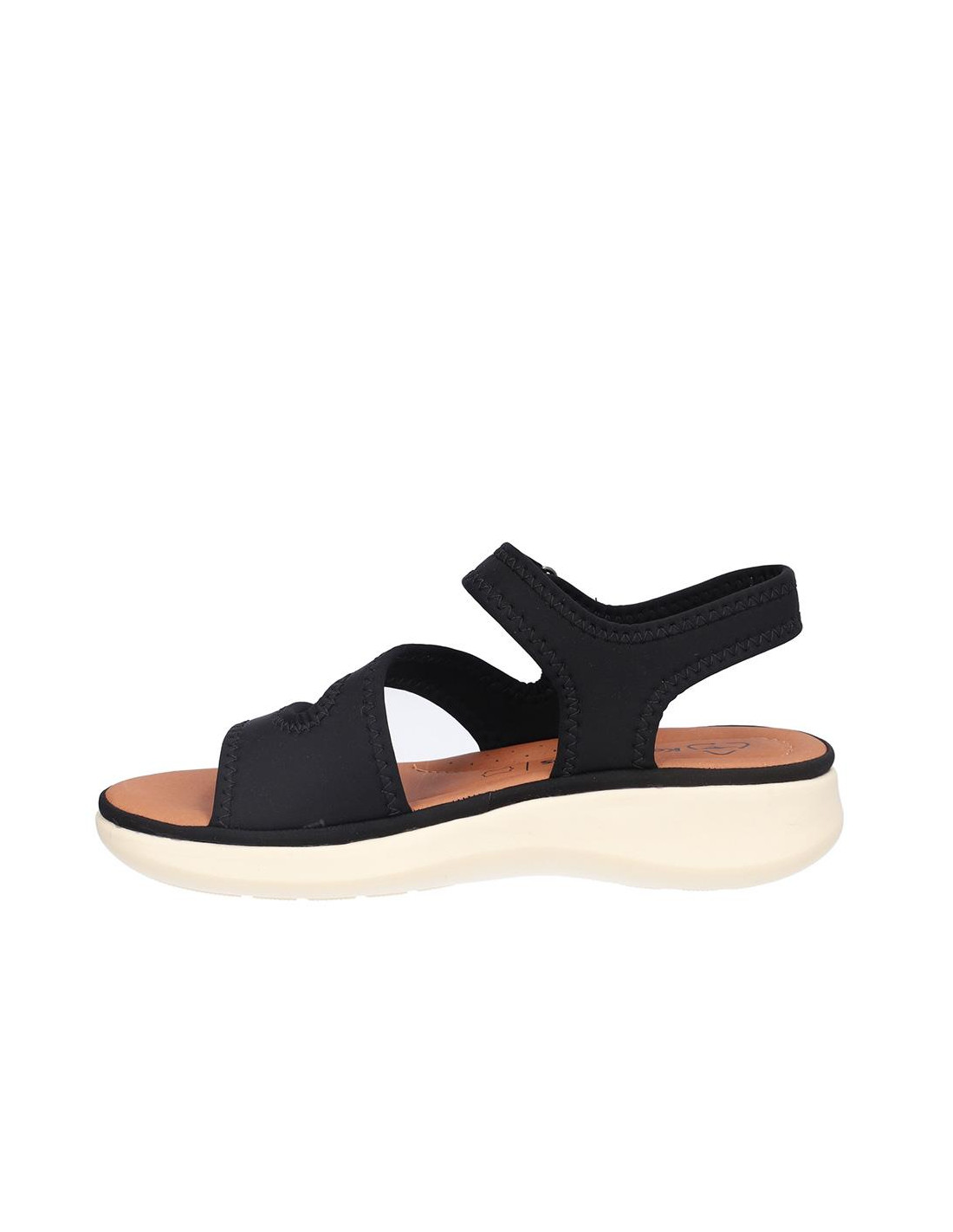 Sandalia Kangaroos señora textil negro, cierre de velcro con hebilla, forro textil, planta acolchada de piel, suela ligera de eva de 3 cm altura. Composición: Empeine: Textil. Forro: Textil. Planta: Piel. Suela: Eva